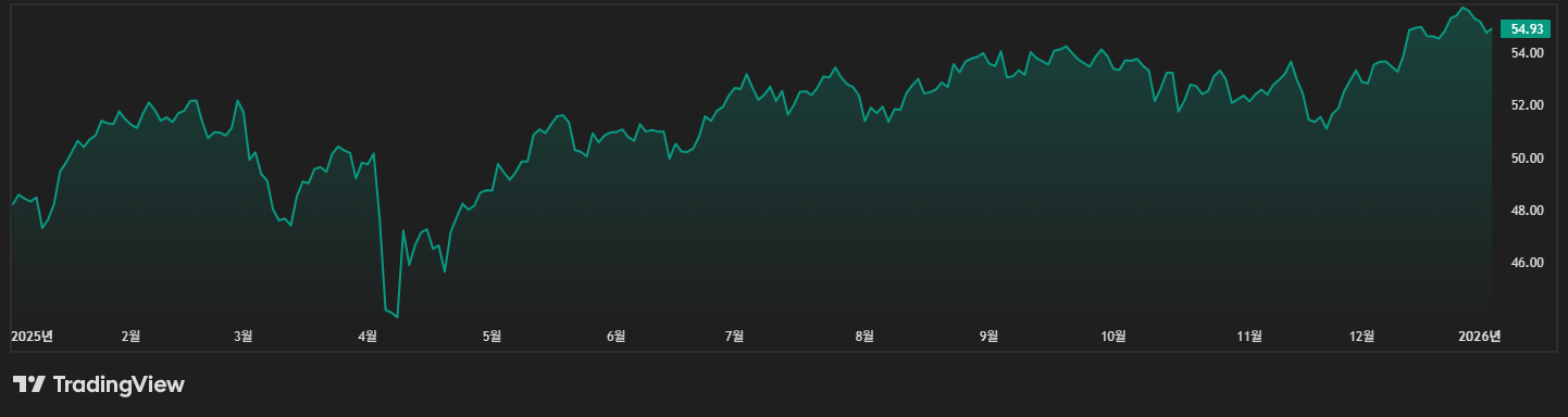 물론 SCHD 같은 고배당 ETF만큼 높은 수익률은 아니지만, S&P 500 평균보다는 다소 높은 수준의 배당률을 유지하고 있어요.